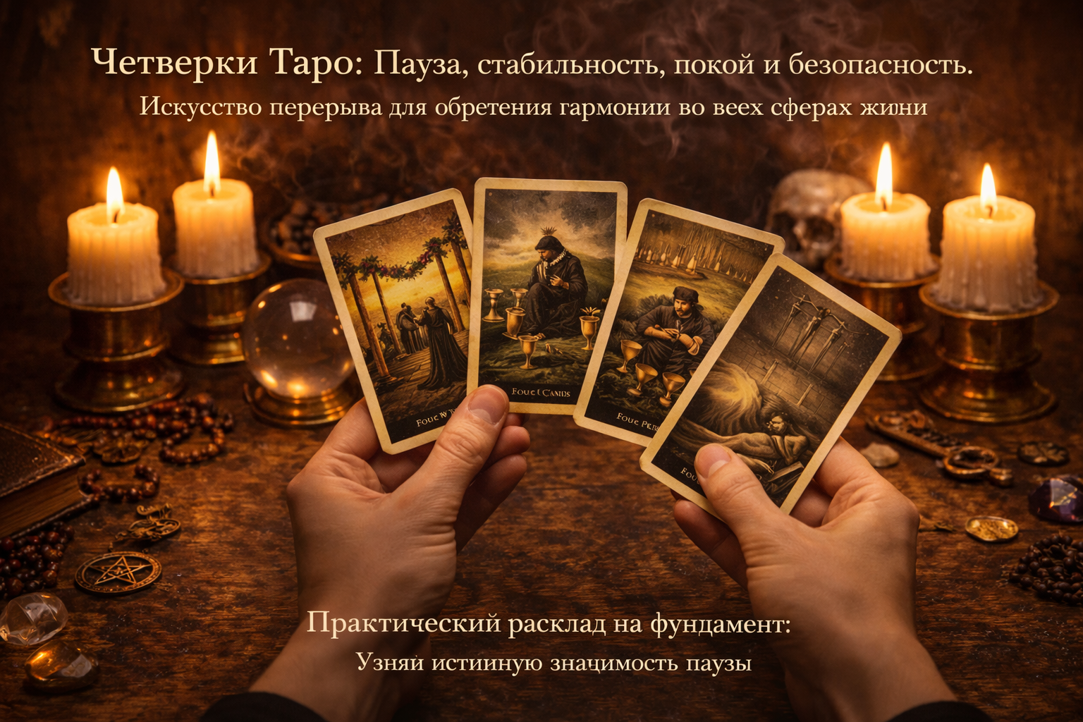 Сегодня мы разберем не только глубокое толкование Четверки Кубков, но и изучим другие краеугольные камни: праздничную Четверку Жезлов, исцеляющую Четверку Мечей и стабильную Четверку Пентаклей. Вы научитесь видеть в этих младших арканах не застой, а потенциал для роста.